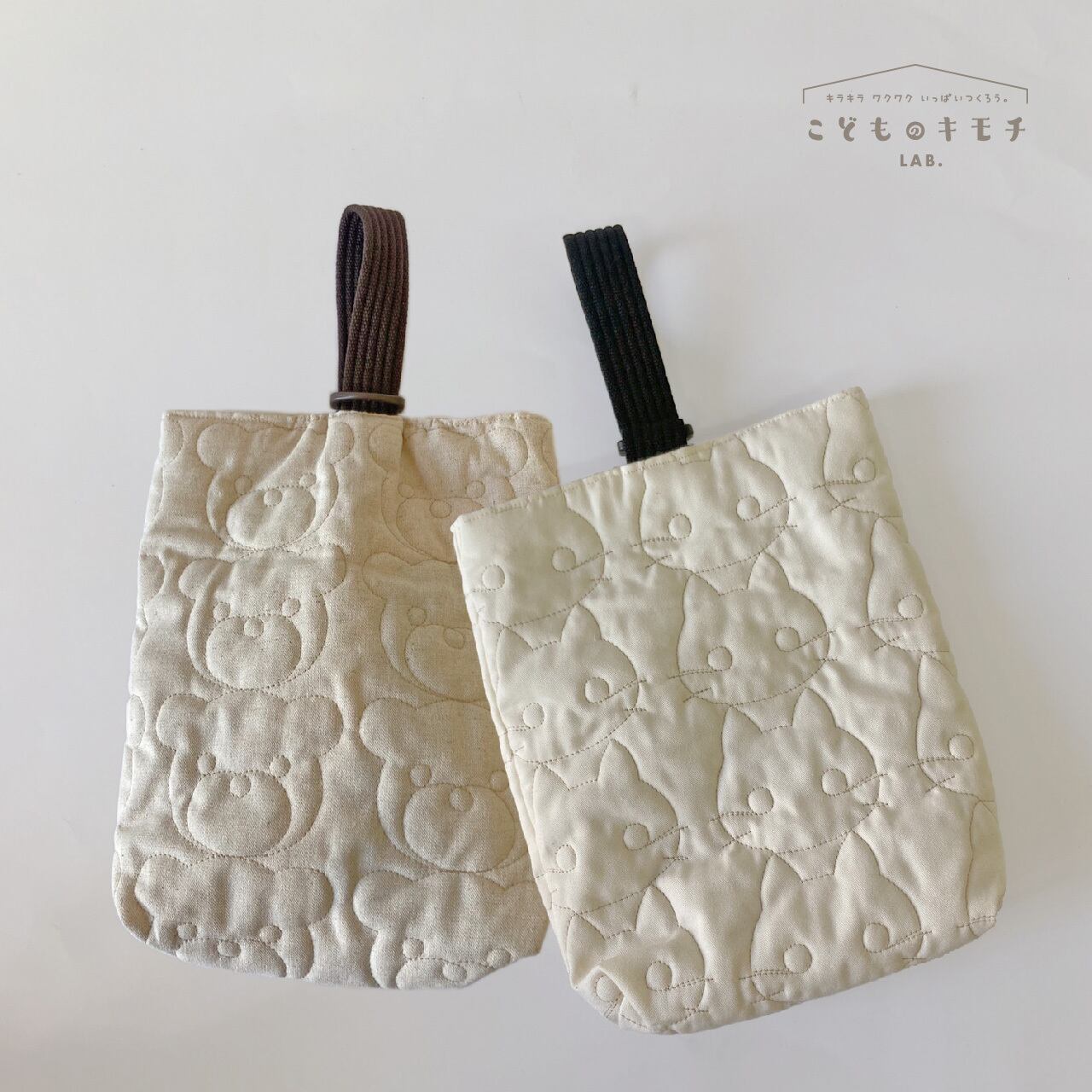かわいいねこさん&くまさん模様のキルティングがポイントです。
