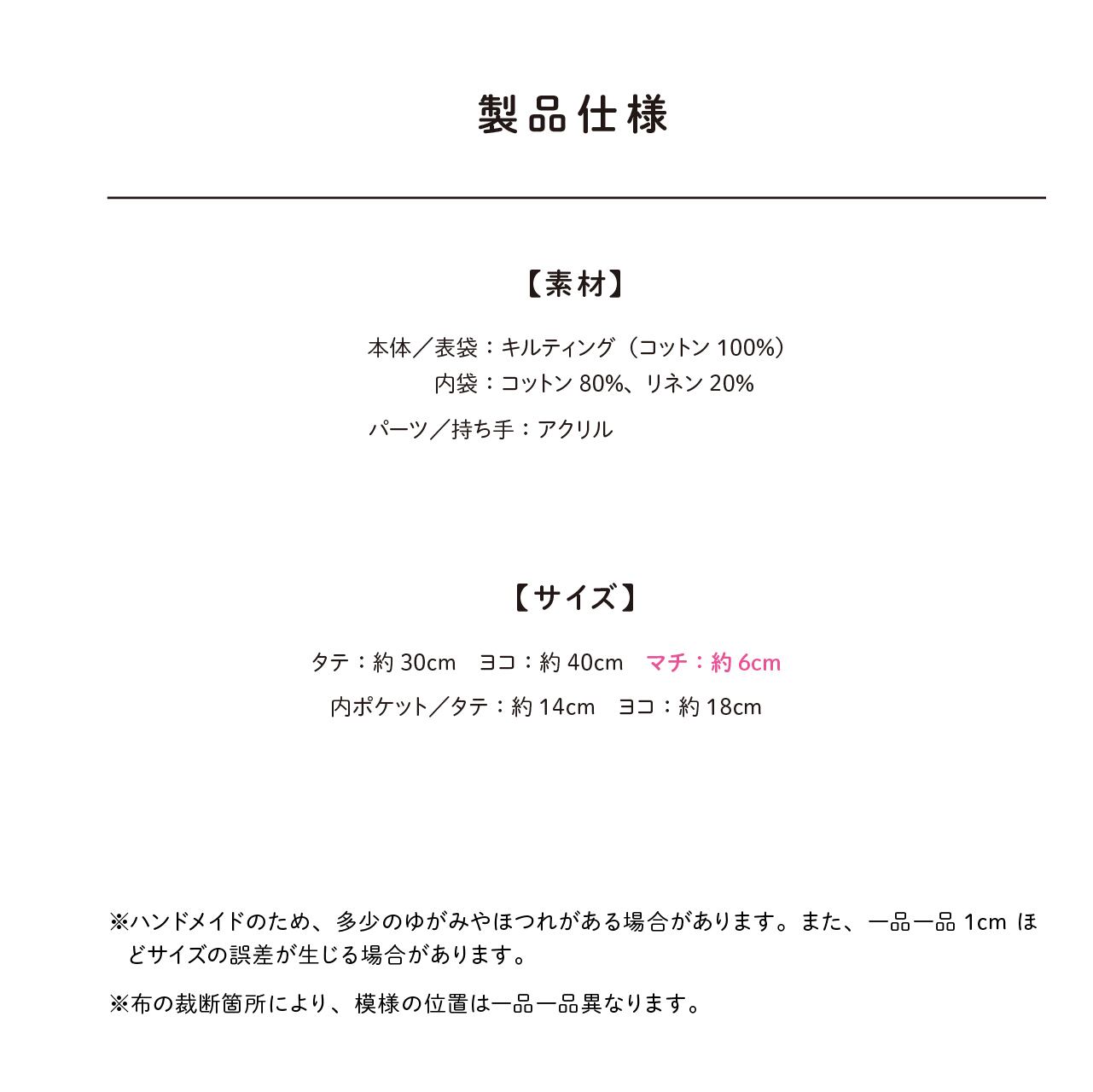 本体/表袋:キルティング(コットン100%) 内袋:コットン80%、リネン20%
