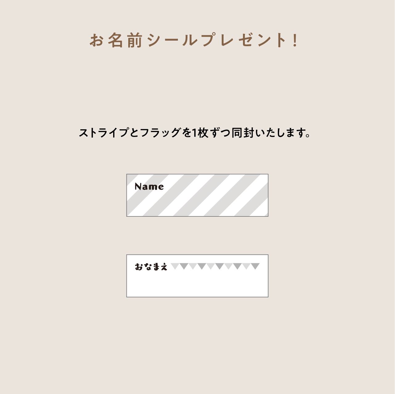 お名前シールはストライプとフラッグを各1枚ずつ同封いたします。
