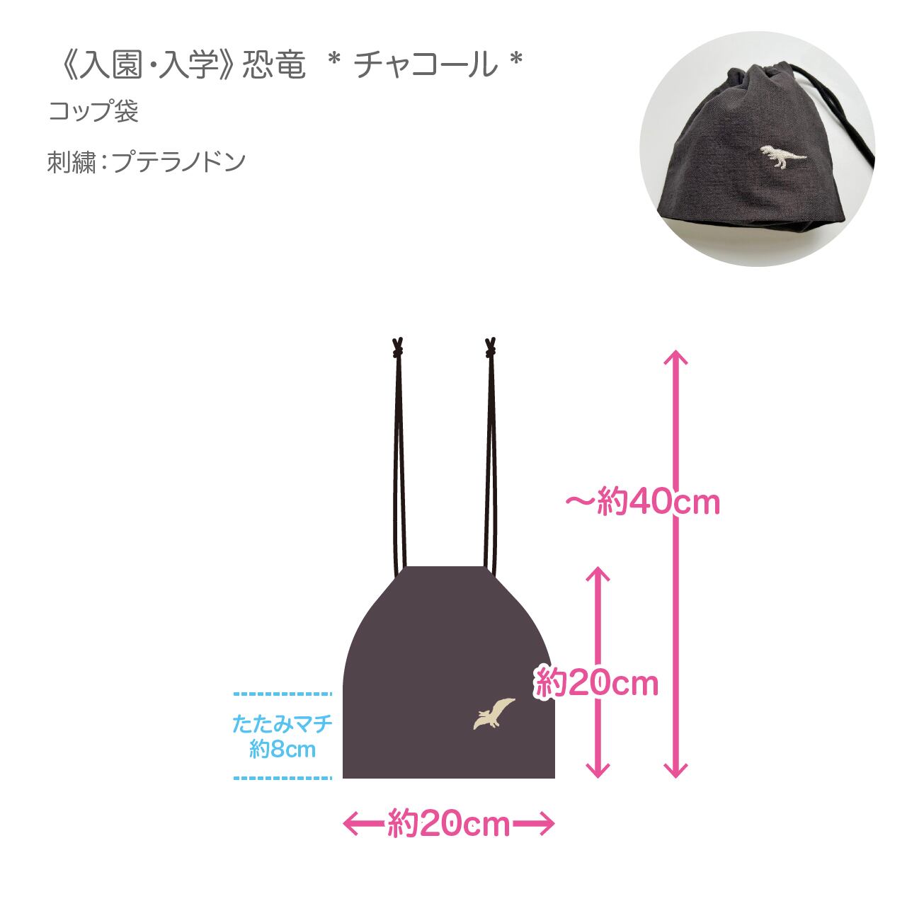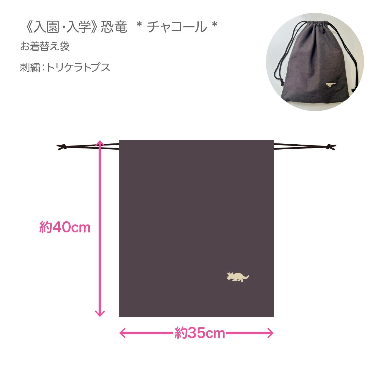 【専用ページ 140】《入園・入学》恐竜 お着替え袋・コップ袋 * チャコール * をご注文のお客様